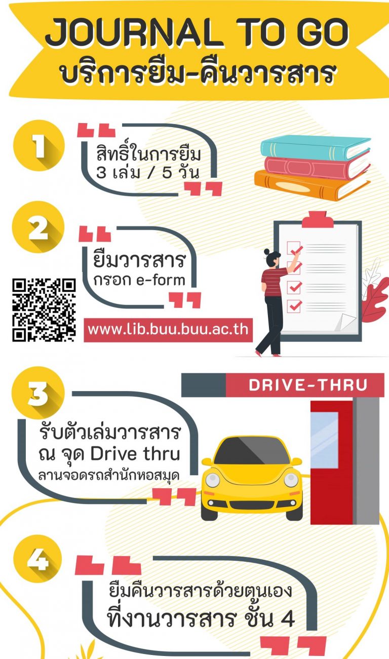 2.1 แบบ Drive Thru เป็นการให้บริการยืมวารสาร โดยการกรอก e-Form บนเว็ปไซต์ของสำนักหอสมุด