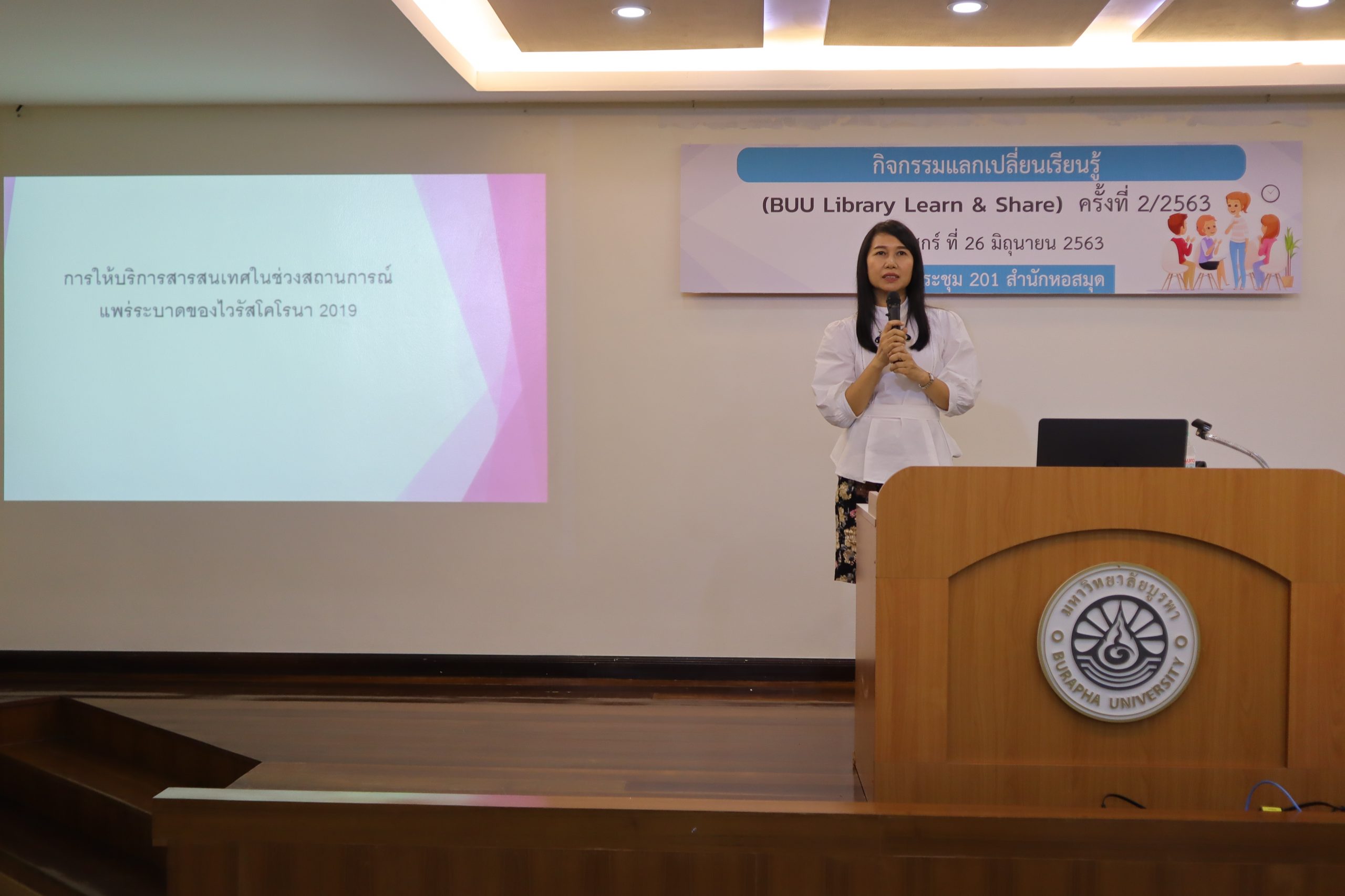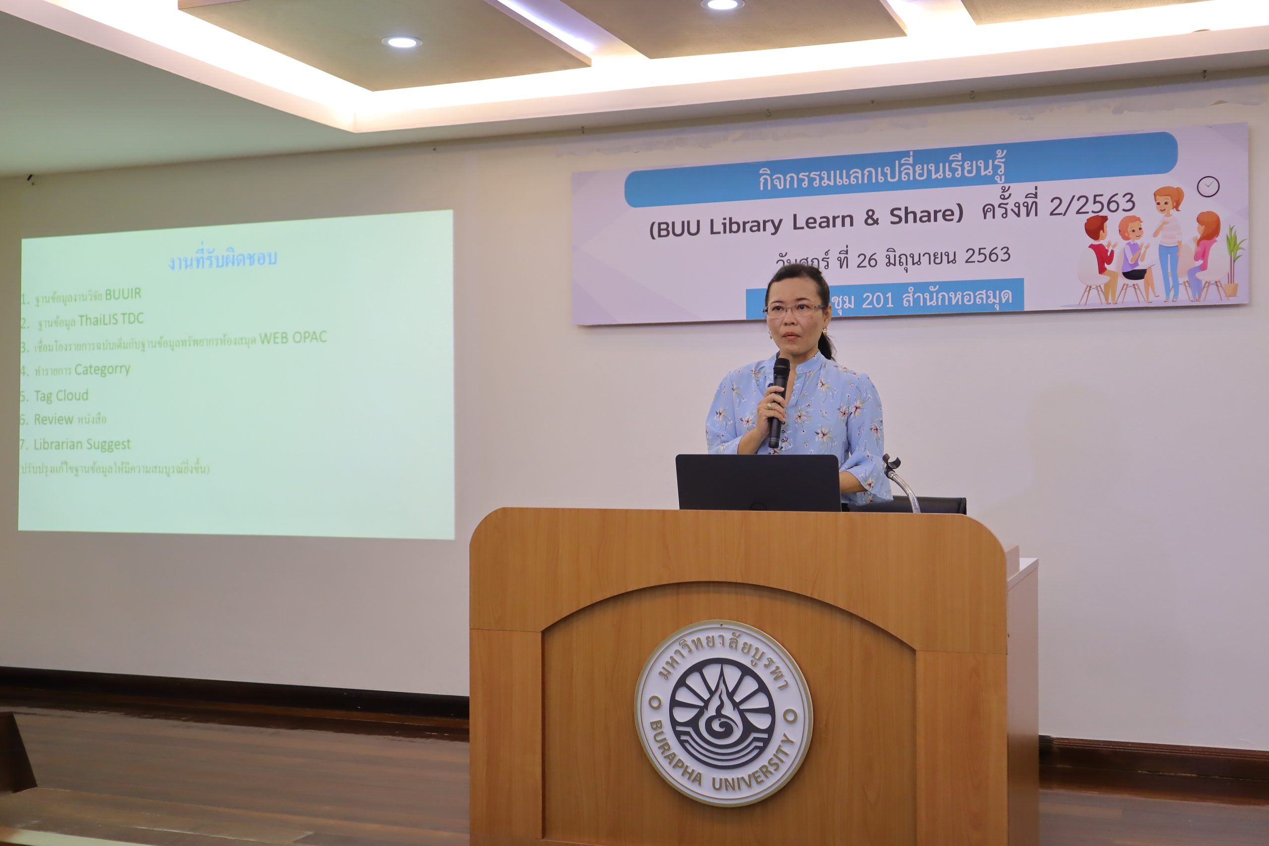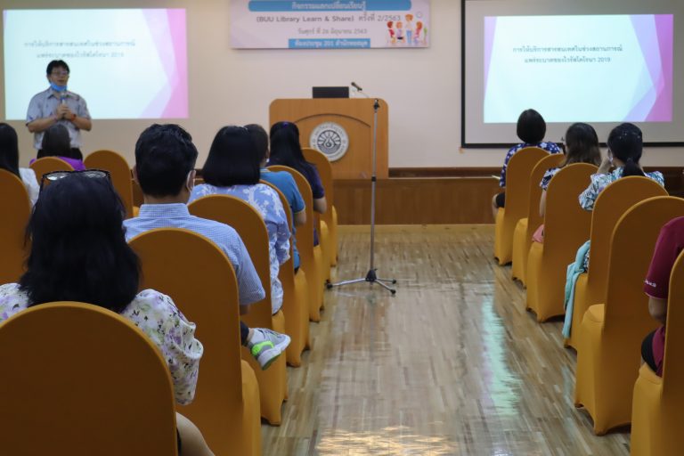 กิจกรรมแลกเปลี่ยนเรียนรู้ (BUU Library Learn & Share) ครั้งที่ 2/2563 เมื่อวันที่ 26 มิถุนายน พ.ศ 2563 ณ ห้องประชุม 201 สำนักหอสมุด มหาวิทยาลัยบูรพา