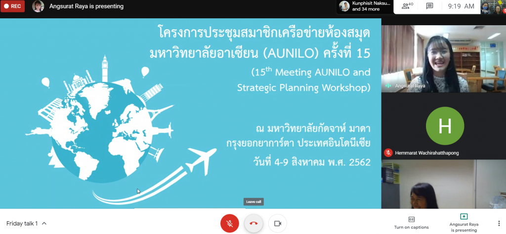 1. ประสบการณ์การประชุม/ดูงาน การประชุมสมาชิกเครือข่ายห้องสมุดมหาวิทยาลัยอาเซียน(AUNILO) ครั้งที่ 15 ณ มหาวิทยาลัยกัดจาห์ มาดา ประเทศอินโนนีเซีย/โดยนางสาวอังสุรัตน์ ระยา