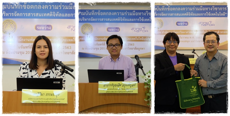 Read Moreการบรรยายทางวิชาการ โดยวิทยากรผู้ทรงคุณวุฒิ จากสำนักงานพัฒนาวิทยาศาสตร์และเทคโนโลยีแห่งชาติ สำนักหอสมุด มหาวิทยาลัยบูรพา ร่วมกับสำนักงานพัฒนาวิทยาศาสตร์และเทคโนโลยีแห่งชาติ (สวทช.) จัดบรรยายทางวิชาการ โดยได้รับเกียรติจากดร.นำชัย ชีววิวรรธน์ ผู้อำนวยการฝ่ายเผยแพร่วิทยาศาสตร์ สำนักงานพัฒนาวิทยาศาสตร์และเทคโนโลยีแห่งชาติ เป็นวิทยากรบรรยายพิเศษในหัวข้อ “แนวโน้มวิทยาศาสตร์และเทคโนโลยีในศตวรรษใหม่” Previous Next และอาจารย์บุญเลิศ อรุณพิบูลย์ ผู้อำนวยการฝ่ายบริการความรู้ทางวิทยาศาสตร์และเทคโนโลยี พร้อมด้วย